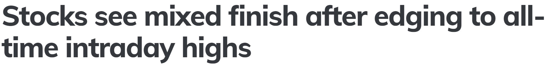 【美股冲高回落收盘涨跌互现】美股周二收盘涨跌互现,市场对贸易协议降低进口关税的幅度产生疑虑,导致基准股指从创纪录的盘中新高回落。