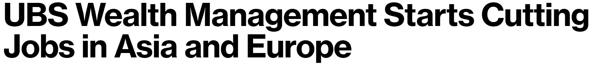 【瑞银开始在亚欧理财部门大规模裁员】瑞银集团开始在其欧洲和亚洲的全球理财部门进行大规模裁员。知情人士透露,瑞银已经在一些欧洲团队中裁减了多达20%的员工,而且正在减少亚洲的管理层级,以拉近客户与高层决策者之间的距离。