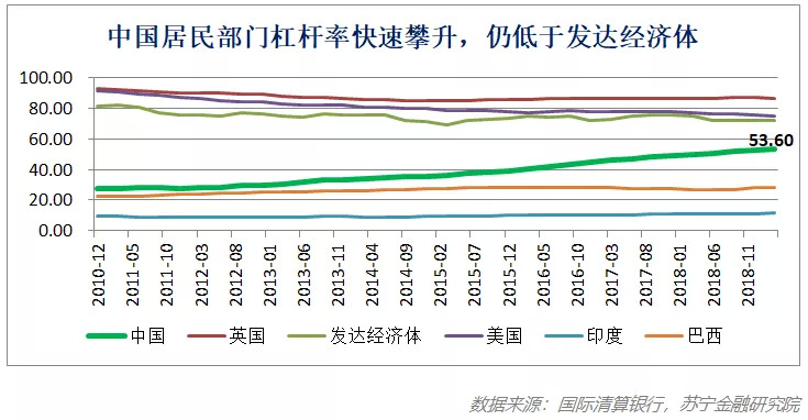 这个指标,方便进行跨国比较,反映一个国家居民的相对负债水平。从国际比较来看,虽然增速较快,我国居民杠杆率距离发达经济体仍有空间。