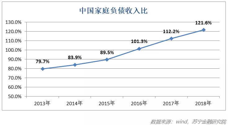 2018年末,中国家庭负债收入比为121.6%,即100元可支配收入对应121.6元债务。不过,可支配收入是当年收入,而负债总额则可能涵盖未来20年里分批偿还的长期借款(如房贷),所以,即便家庭负债收入比超过100%,也不意味着偿债能力有问题。
