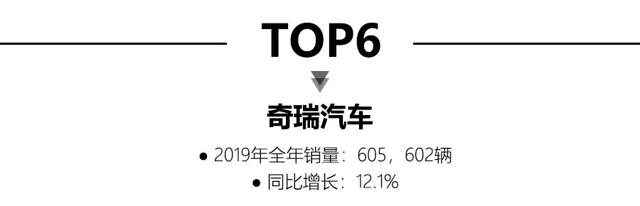 ④. 奇瑞汽车虽然2019年销量排名落后,但是60.5万的年销量相较于去年已经提升明显,同比增长达到12.1%。