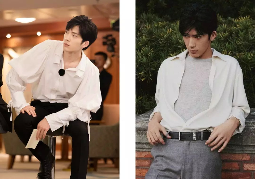 而且两个人的私服风格正好是互补的。井柏然是高级文艺又舒服。每次亮相的正装造型,从剪裁到质感,每一套都挑不出什么毛病。