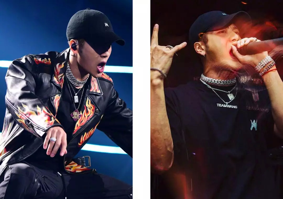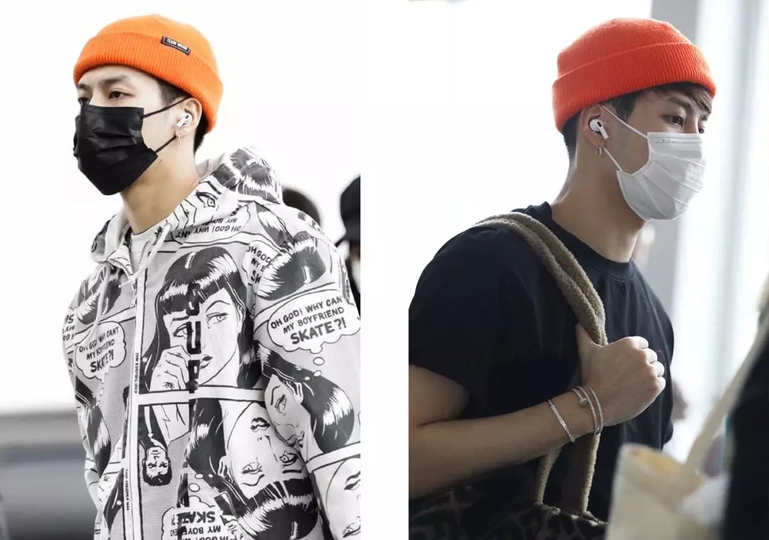 和他不一样,王嘉尔的风格就明显活泼很多,大多是走街头嘻哈风。各色毛线冷帽是标配;