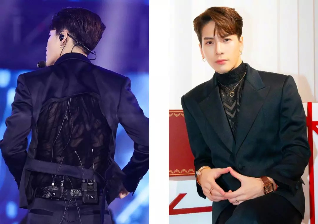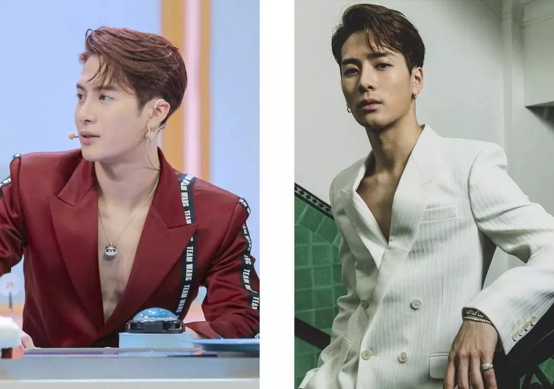 如果说井柏然穿西装是标准三好青年,王嘉尔就是捣蛋鬼。他会真空穿、