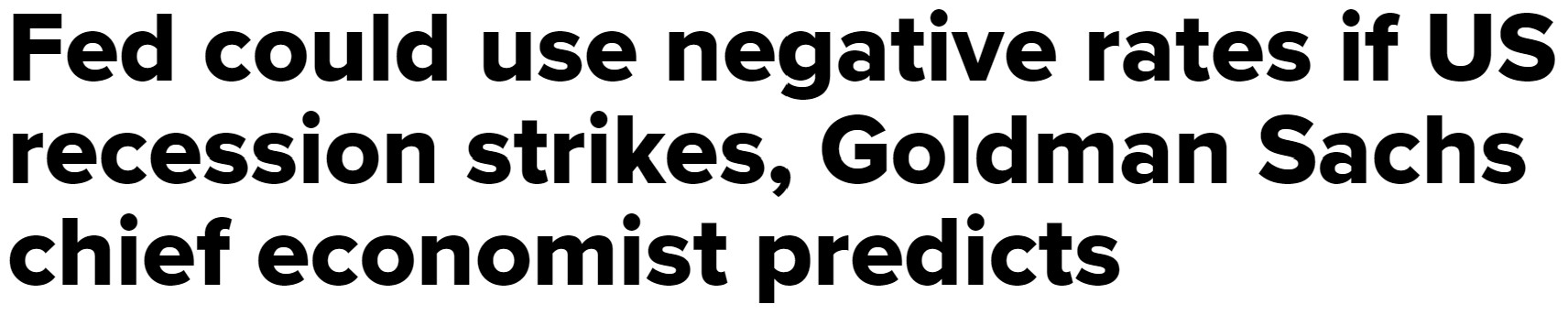 【高盛预计美联储未来可能会实施负利率】高盛首席经济学家哈祖斯周三向CNBC表示,美联储可能会在未来实施负利率,尽管目前对这一非常规措施的风险心存疑虑。