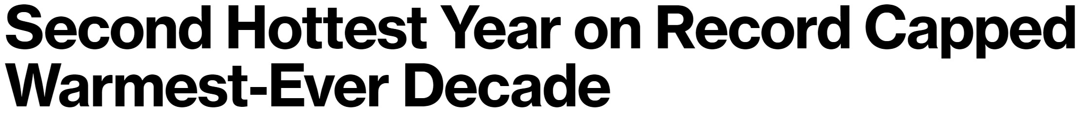 2010年以来的十年是有记录以来最热的十年,连续第四次创下新高。2020年气温预计将与2019年类似。