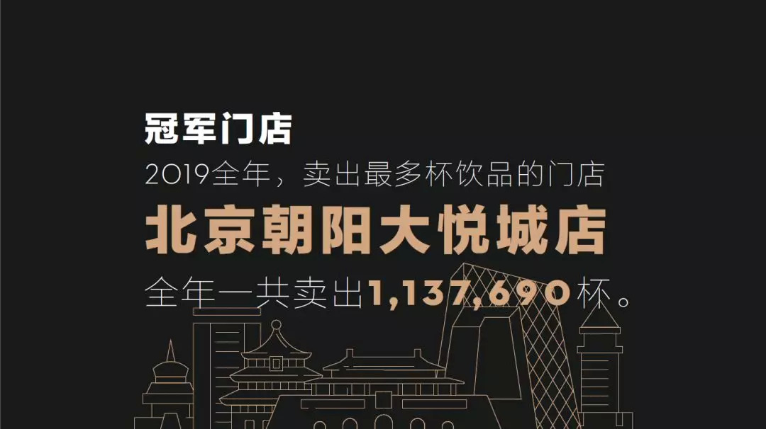 2019年全年,北京朝阳大悦城店共卖出1137690杯,平均全年每天售出3300+杯饮品。
