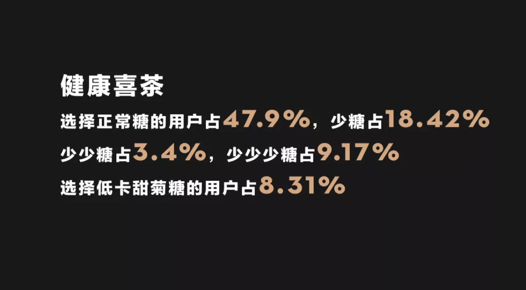 糖分:有一半以上的消费者选择了不同程度的少糖,或选择低卡甜菊糖,选择正常糖的用户占比为47.9%。