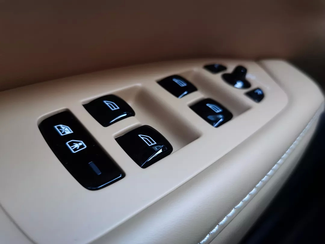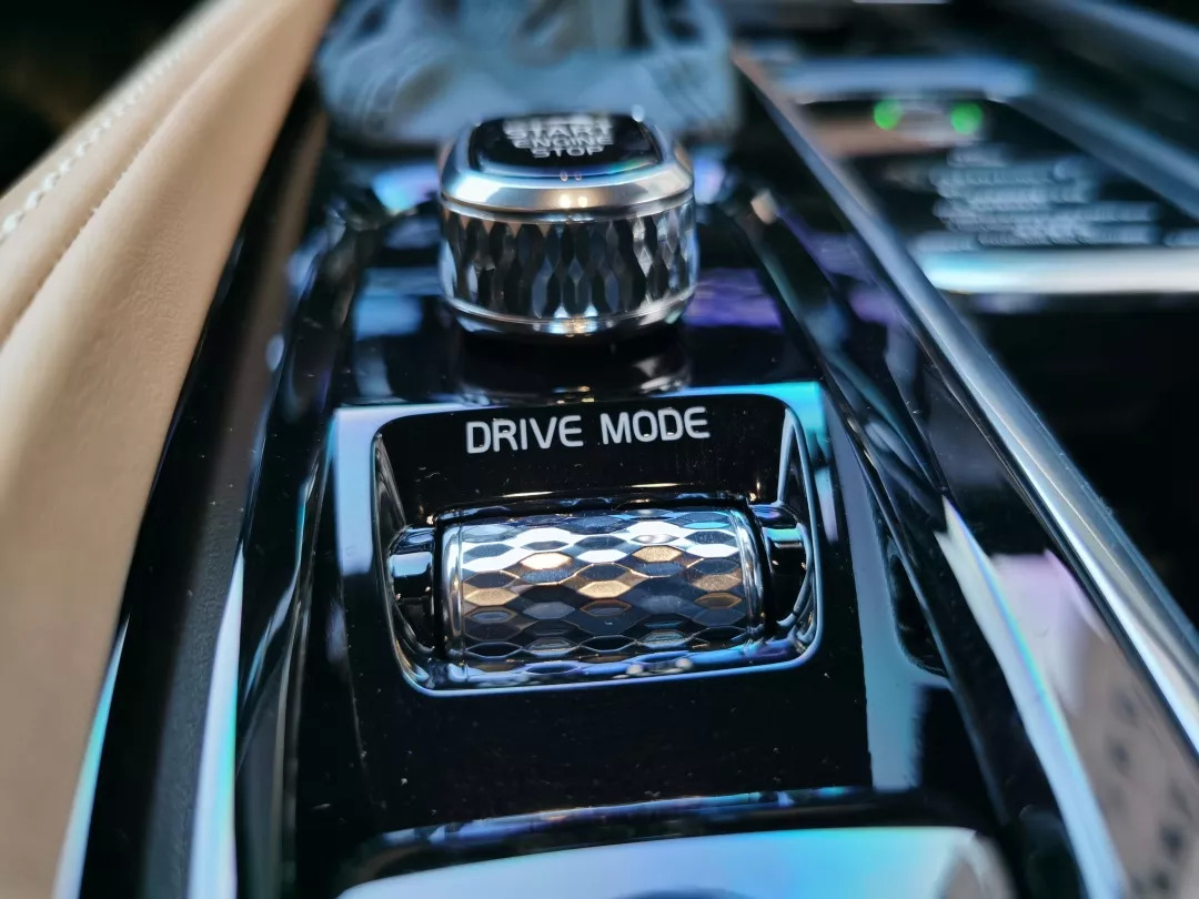 细腻的皮革自不用多说,细节处见真章。你看这启动旋钮以及驾驶模式选择滚轮,用精雕细琢这个词语不过分吧;再看这车窗升降键,虽是塑料,但抛光打磨得极为细致,让我忍不住伸出手去触碰,感受一下它们的质感。类似这种细微的点如果仔细去找,还有很多。