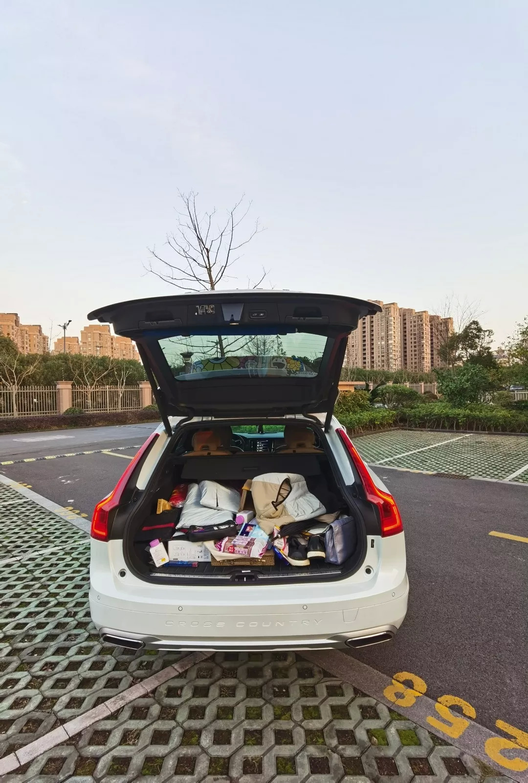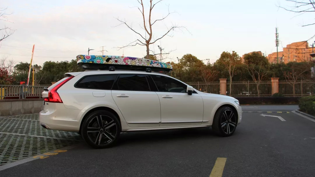 但是在说到空间这个问题上,欧洲的车我早有心理准备。虽然V90 CC尺寸是中大型车,只不过车内这空间嘛,或许都比不上很多日本和美国的中型车。前排座椅调到正常位置后,后排腿部空间将将一拳。但这也无伤大雅,旅行车的“后备箱”才是杀手锏所在——空间自由度高,开口高度又比SUV低,搬运物件简直太方便了!随时可以来一场说走就走的旅行了,这不车主都已经把旅行箱放车顶了,不过别多想,只是起个范儿。
