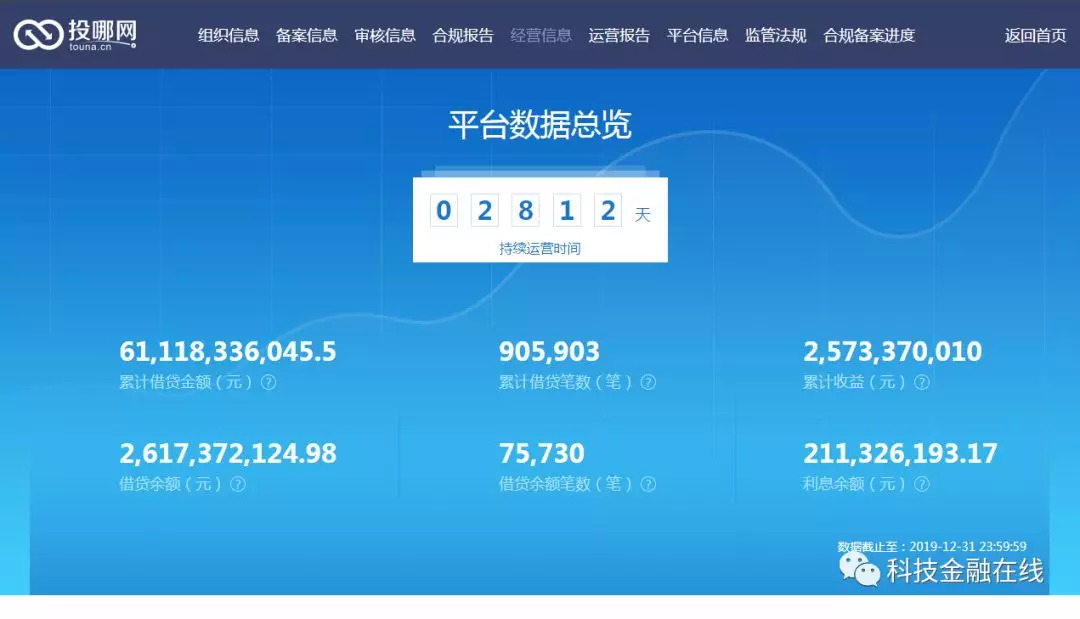根据投哪网官网的数据披露显示,截止2019年12月31日,当前累计借贷金额611.18亿元,借贷余额26.17亿元,当前出借人数37,983人,所有逾期数据方面均为0,累计代偿金额为9.49亿元。