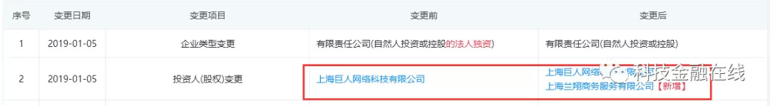 由于业绩承诺未完成,2018年12月28日,巨人网络一纸公告将旺金金融的控制权拱手相让,接盘者为上海兰翔商务服务有限公司。