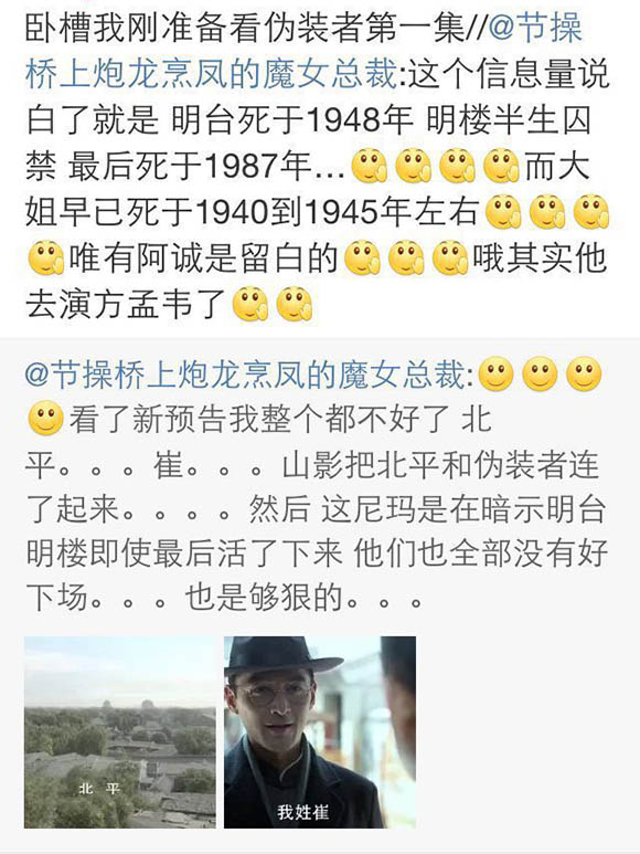 而在41集预告中,明台去北平找张月印先生,自称姓崔...官方就是爱玩,之后不就是《北平无战事》了吗?