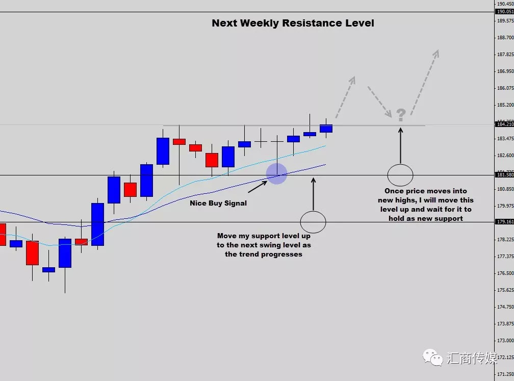 随着趋势的展开,我会往上移动支撑位。我唯一标注的阻力位是下一个周图主要反转点,这个反转点与当前价格波动也有一段距离。
