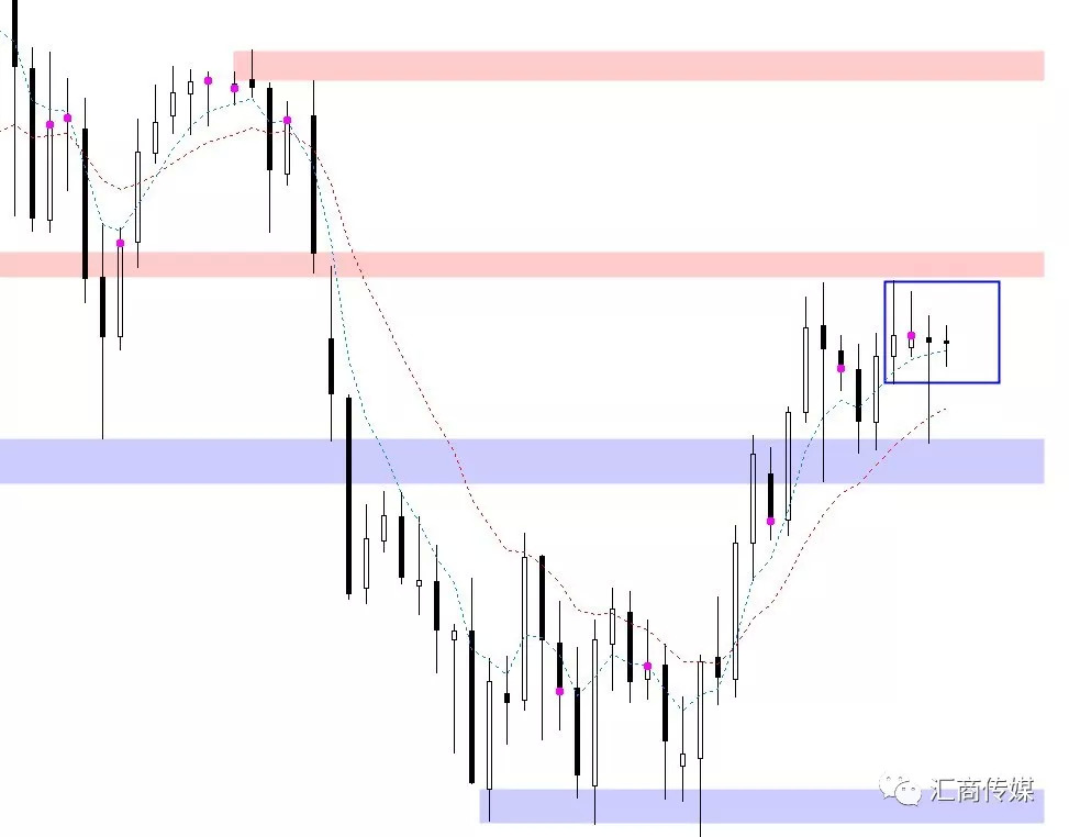 4小时图也是一样的。只需要一到两个重要的价位标注出来,然后随着趋势的变化上下移动这两个价位即可: