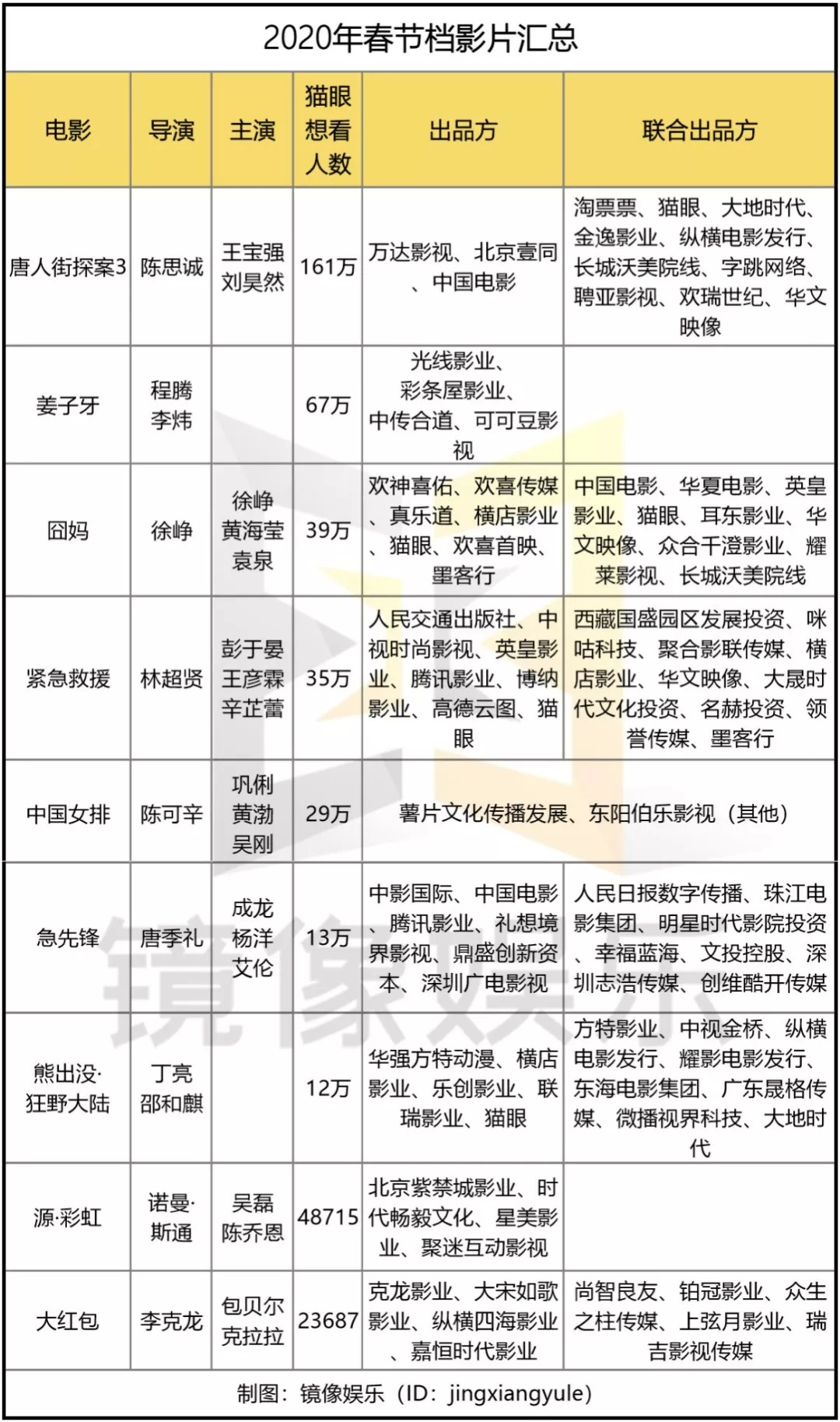 2020年春节档,导演系、监制系、主创系公司,或与这三者深度绑定的公司都很是活跃。