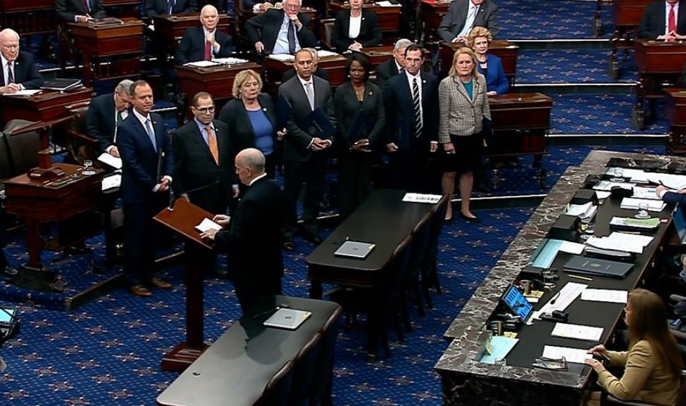周三签署条款后,众议院人员列队穿过国会大厦,向参议院递交了两项弹劾条款。周四当日,参议院100名议员宣誓就任特朗普弹劾审判的陪审员。最高法院首席大法官约翰·罗伯茨向参议员宣读了“司法公正”的誓言。未来几周,参议员们将决定是否因众议院提出的指控将特朗普免职。