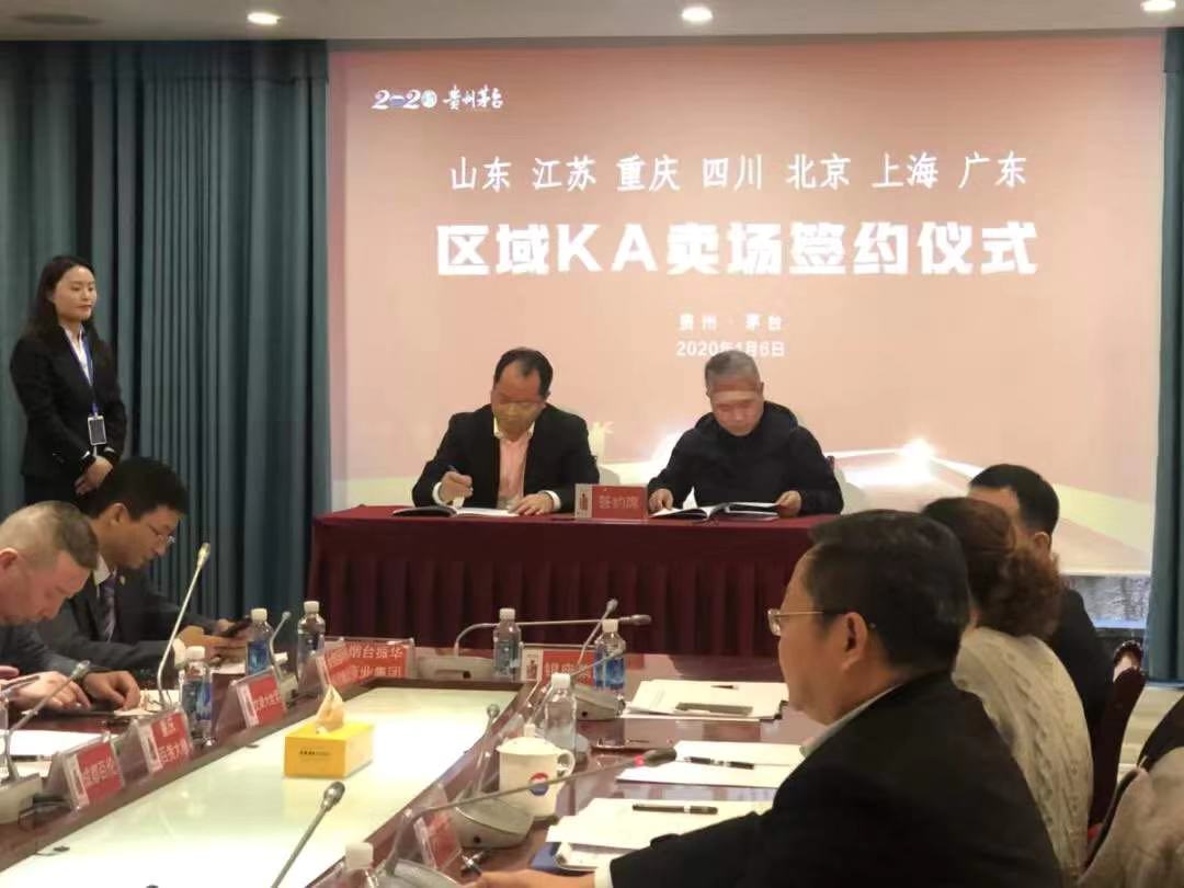 1月6日,茅台开启山东、江苏、重庆、四川、北京、上海、广州区域的KA(重点客户)卖场签约仪式。