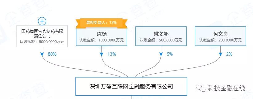 企查查显示,2016年6月16日,万盈金融股权进行了变更,上海富田退出,而国药集团宜宾制药有限责任公司接手了其持有的80%股权。