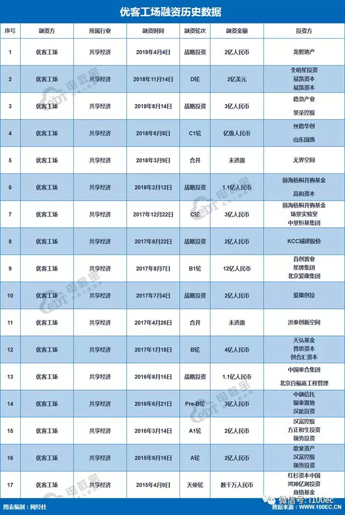 此外,据网经社“电数宝”数据显示,优客工场共获得17轮融资,融资总额超53亿人民币,估值32亿美元,是中国共享办公头部平台。