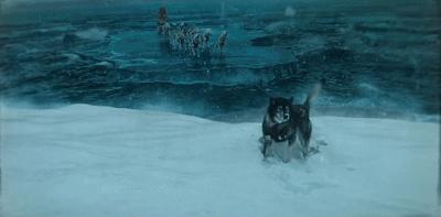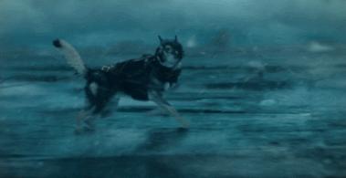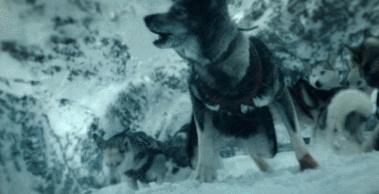 翻越雪山时,因风暴遮挡视线,雪橇队差一点滑下悬崖葬身崖底,危急时刻作为领头犬的多哥,率先奋力往回爬,带着狗队化险为夷,更是救了塞帕拉一命。可多哥的一只前爪也因此受伤。