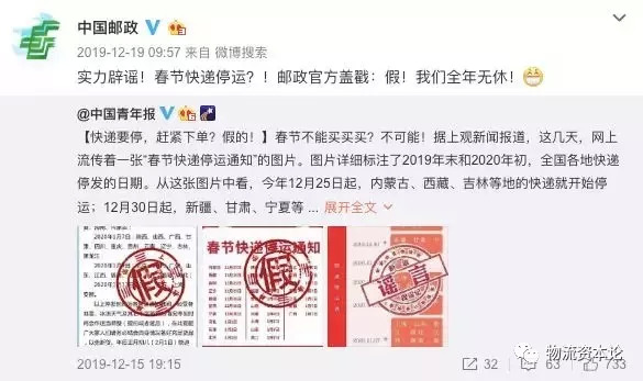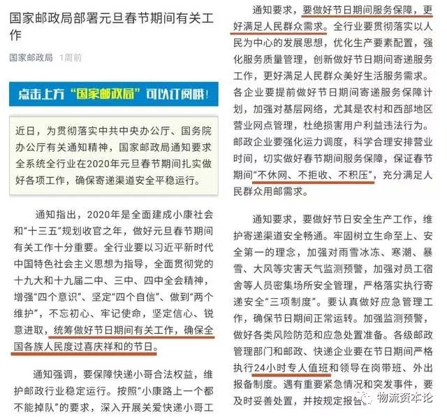 没成想此时国家邮政局发话了,今年春节期间,要满足群众用邮需求“不休网,不拒收,不压件”!