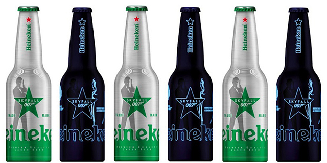 荷兰喜力啤酒花费1亿美元赞助了新一部007系列电影《幽灵党》,并邀请邦德的扮演者丹尼尔·克雷格出演了全新广告大片。在这支名为“追踪”的视频广告中,克雷格扮演的邦德跳上一艘快艇躲避反派追踪,Zara Prassinot扮演的女子成功协助邦德逃脱,并在最后端来一盘喜力啤酒。