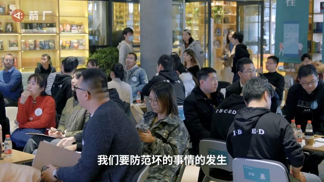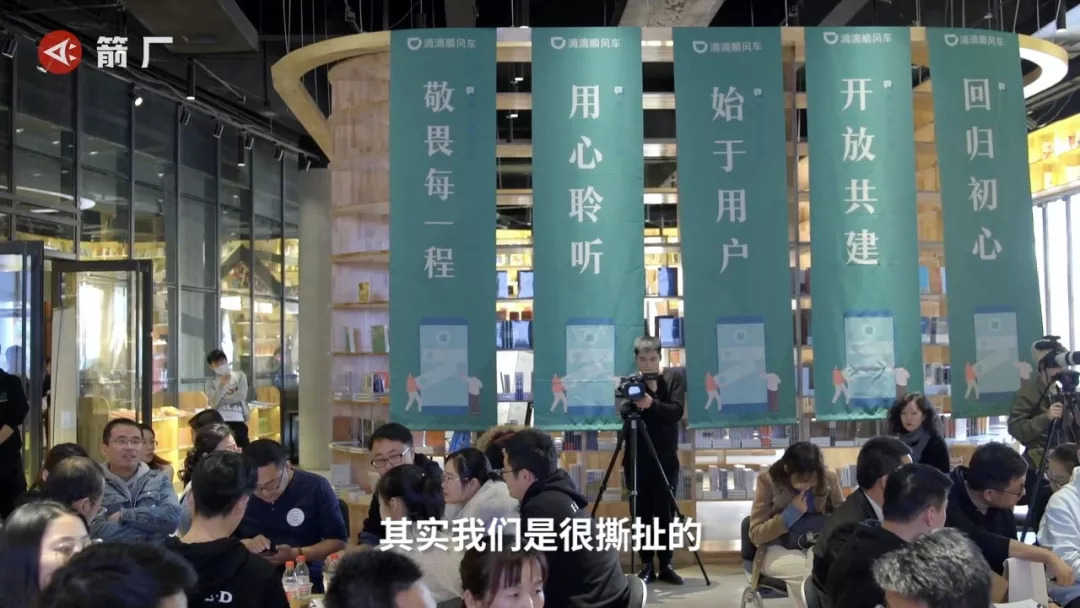 开始拍摄前,我们被明确告知全程禁止录音,只可以捕捉会议状态。一直到会议终了,导演才有机会向在场的与会人员抛出问题:“女性八点事件引起轩然大波,顺风车内部的出发点是什么?是否有预想过遇到这样的舆论危机?”