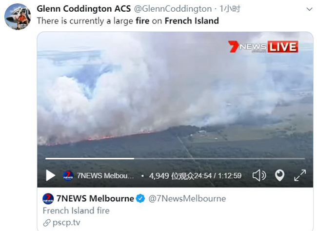与此同时,东南部维多利亚州法国岛的火势却处于失控状态,当地政府已经要求民众立刻转移。据统计,截至目前,澳大利亚山火所制造的二氧化碳排放量已超过该国去年全年排放量的三分之二。