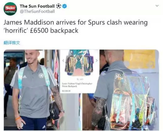 还有被《太阳报》用“可怕”来形容的球星詹姆斯-麦迪逊的LV背包。