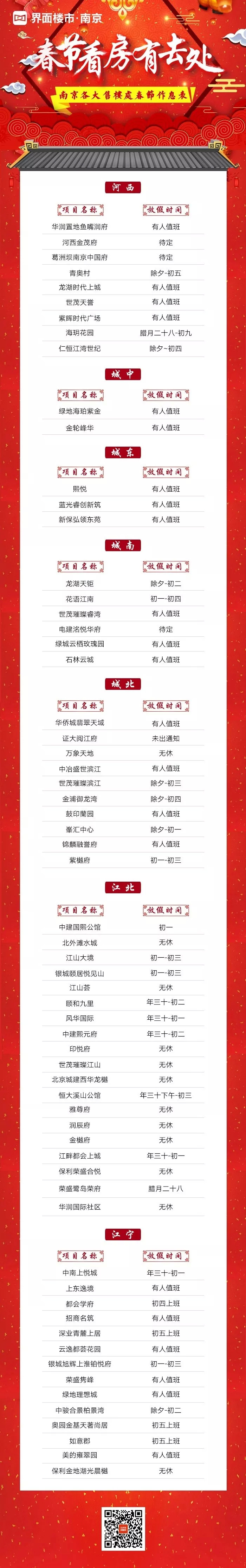 附:南京各大热盘售楼处春节作息表↓↓↓