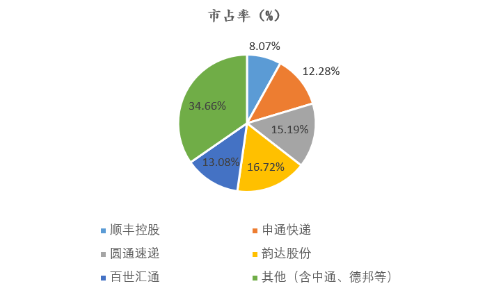 此外,相比之下顺丰控股的市占率也略显逊色。据国家邮政局统计显示,2019年全年实现快递业务量600亿,截至发稿日,据各家发布经营简报统计,顺丰市占率仅有8%。