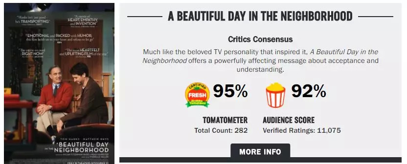 当汤姆·汉克斯安安稳稳的坐在镜头前,跟我们说,不要因为宣泄一己私欲,就去嘲笑别人时,仿佛弗雷德·罗杰斯真的来到镜头前。