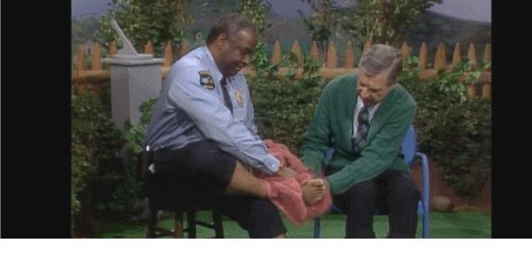 在种族问题依然严重的20世纪60年代,弗雷德·罗杰斯坦言邀请黑人警官上节目,一起泡脚。