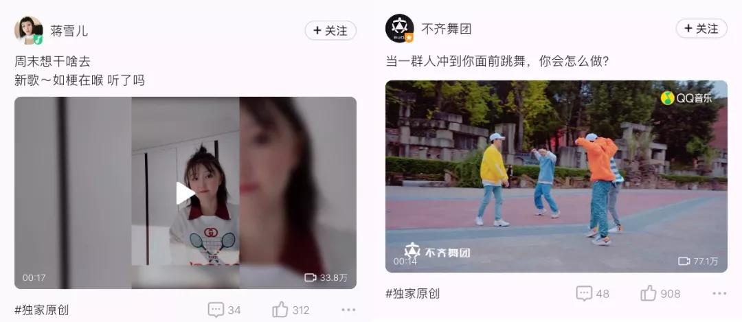 此外,短视频形式也会进一步丰富音乐平台的内容生态,比如QQ音乐在开放相关视频扶持计划后,当时也吸引了诸多不同类型的KOL,如舞者跳跳舞团、馒头、十点等创意人也纷纷入驻。