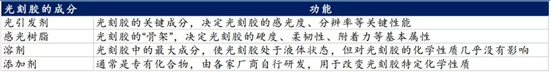 ▲光刻胶的组成成分