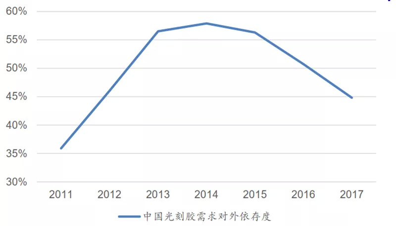 ▲中国光刻胶需求对外依存度