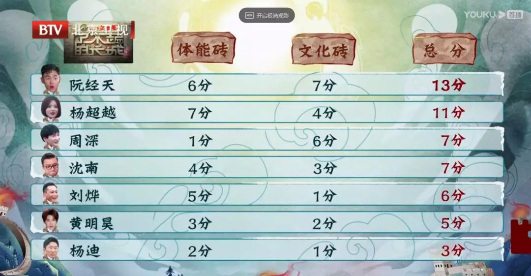 前面我们说过节目以“文化砖”和“体能砖”两大部分组成,但所谓“体能砖”环节,其实对明星体能要求不算高,也没有太多竞技元素,倒是慢综艺的感觉更浓。比如节目一开篇,嘉宾团依次抵达长城脚下,随后开始爬长城,最后一个将接受惩罚。