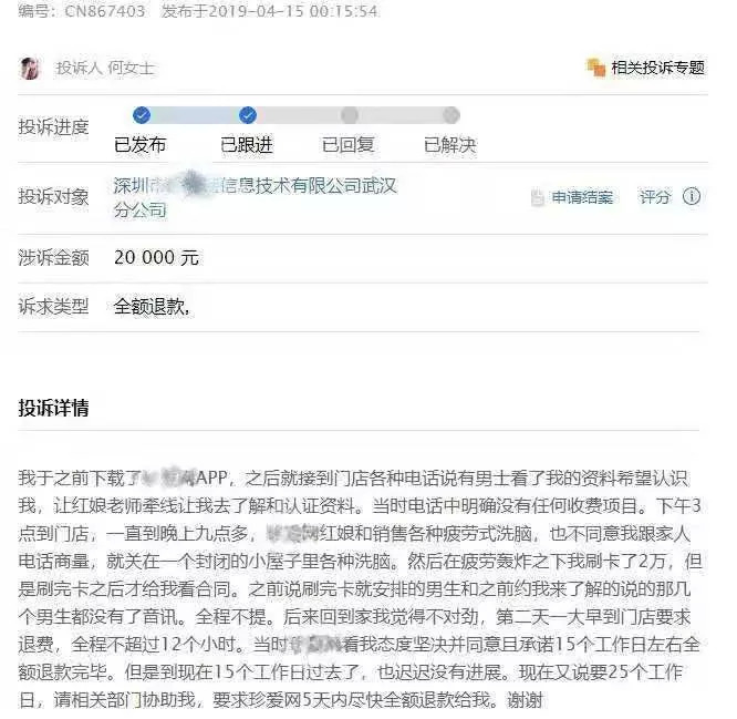 这种“定向狩猎”的盈利模式愈演愈烈,每年关于婚恋平台强制消费的投诉高达几千起。有网友爆料,自己怀着“体验一下”的心态来到指定门店后,非但没有见到短信里约好的相亲对象,反而被关在一个狭小的密闭隔断间,进行了长达三四个小时的洗脑式营销。