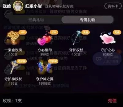 普通围观只需2元/小时,如果遇见合意的女嘉宾,则可申请上麦。一旦上麦后,男性用户则成了被督促送礼的重点对象,红娘会以表白为由让其送礼,礼物档次明码标价,从5元至2888元不等,送得越贵,代表心越诚。