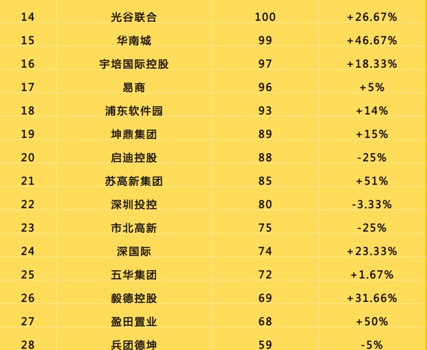 最终,华夏幸福以168亿元的品牌估值高居榜首,张江高科、华南城、联东集团、临港集团、天安数码城、亿达中国、宏泰发展、东湖高新和中新集团,分列2~10位。据了解,此次榜单评选累计参与人数81194人次,累计投票数328136票。