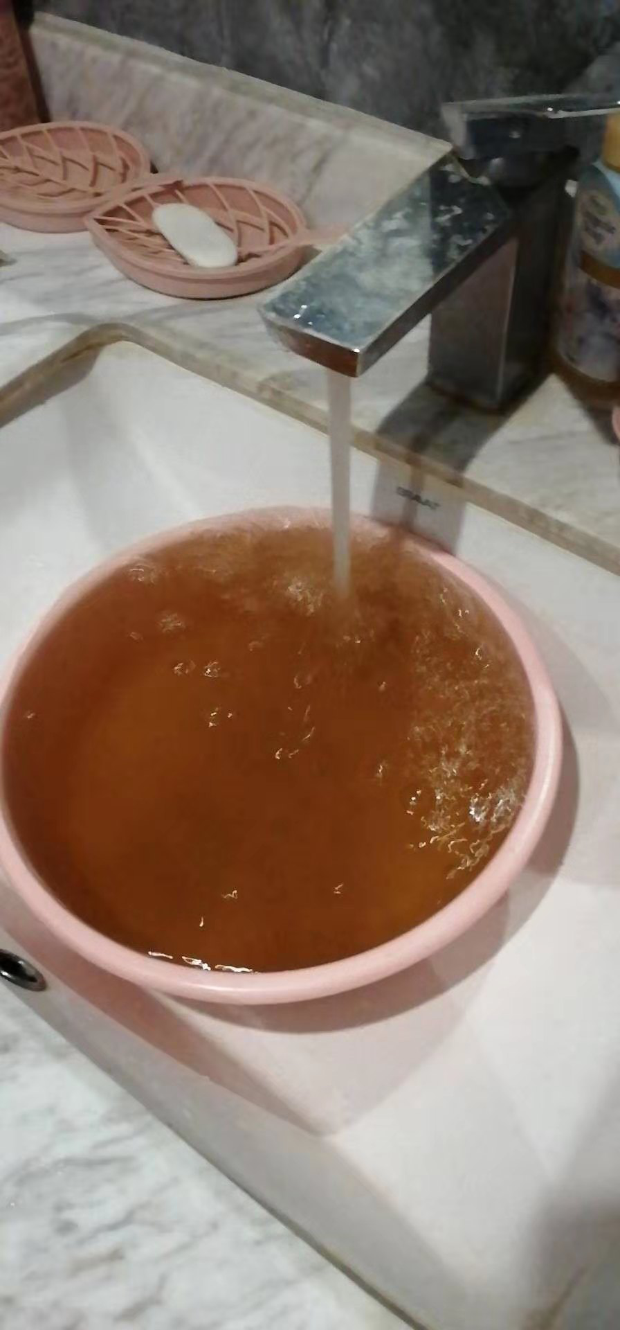 业主张女士表示,“说到洗澡都不怕你笑话,因为水质不稳定,只能瞅机会,看着管道的水清澈一点了,抓紧时间洗一下。”张女士也很气愤,“水质真的太差,水里的杂质肉眼都能看到,三天两头水质浑浊,颜色就像造纸厂排出来的废水,让人觉得根本没法生活。这样的水你说能喝吗?如果不交水费,连冲厕所的水都没有了。饮用水买桶装水,洗衣服的水用过滤水……”