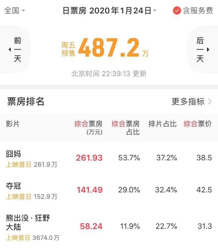 第三个变故是《囧妈》《夺冠》《熊出没·狂野大陆》从大年初一提档至除夕,预售开启两天,种子选手之间已经开始分割战场。