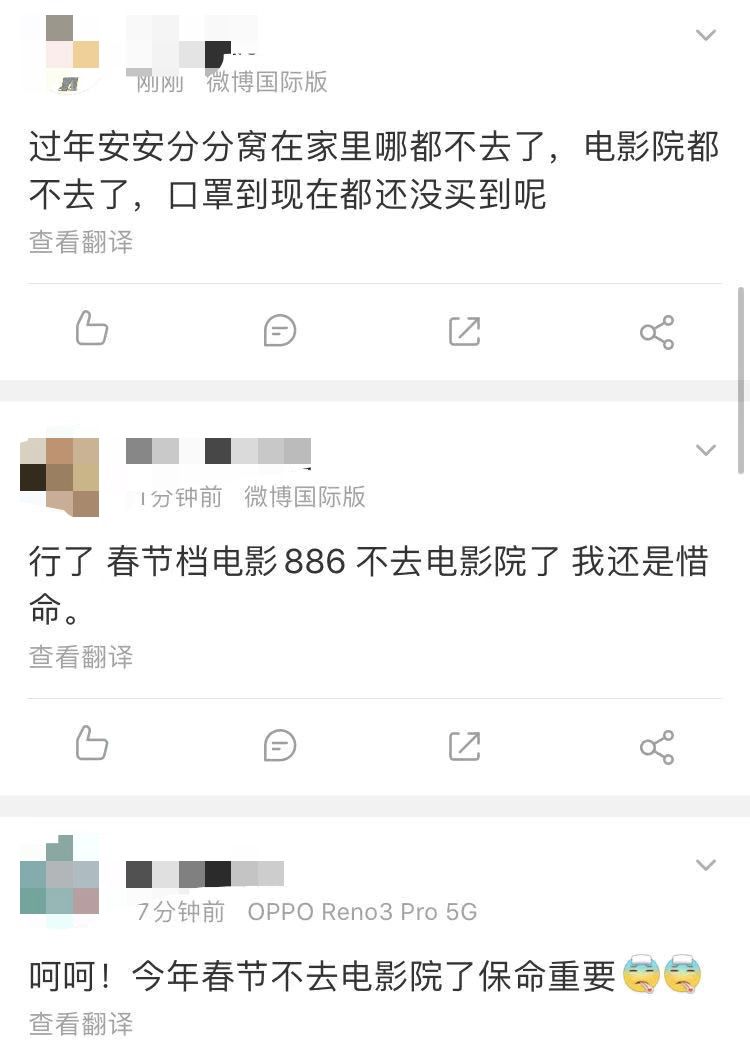 “本来春节档有好几部都想去看的,但是电影院那么封闭不流通的环境现在有点不敢去。”“谁能想到今年春节档的最大对手是肺炎。”网友们在微博上说。舆论一定程度反应了行业的担忧,今年春节档观影人次或许将再次遭遇下降。