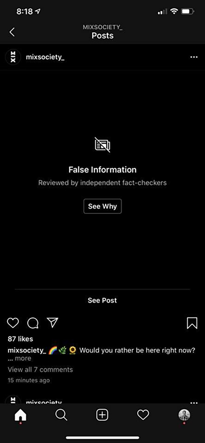Instagram 表示,该系统使用“来自我们社区的反馈和技术的结合”来识别哪些照片应该提交给第三方独立的事实核查人员。如果事实核查人员确定照片是假的,那么这张照片将被隐藏并显示为一条警告信息。此外,“假”照片也会从浏览和标签页面中删除,并在以后的帖子中自动标记。