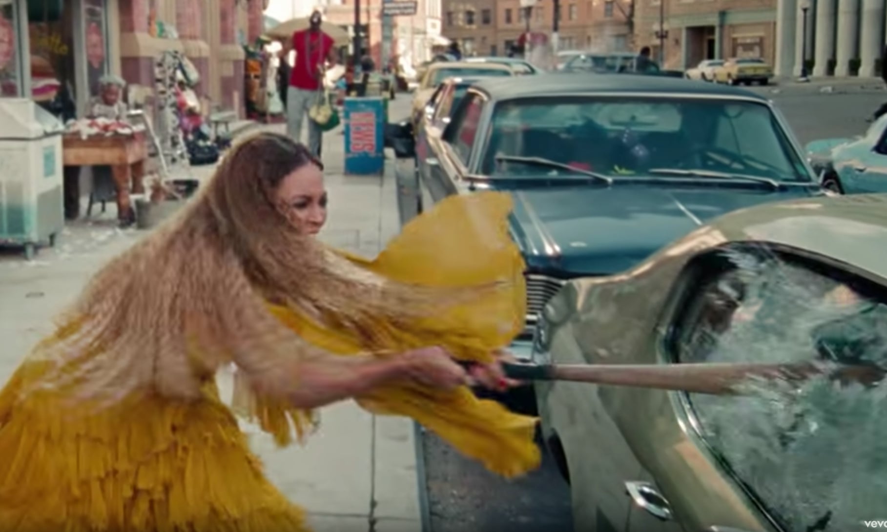 火把莲是古代用于春季繁衍仪式的权杖,具有男性意义。画面中的女子无忧无虑地走着,高兴地用火把莲砸碎停在路边的车子的窗户。路过的人们笑着,就像是在纵容一个无辜的孩子。笑的人甚至还包括一位女警察,她向做出暴力行为的女主角敬礼。后来,碧昂丝还曾在她的MV《Hold Up》中向该作品致敬。