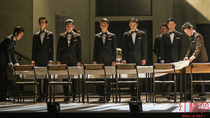 为什么是全男班的演绎?林奕华说,有句老话讲,“少不看水浒,老不看三国,男不看红楼,女不看西厢”,男人什么不读红楼?会不会是因为男人不想让红楼来读他们自己呢?如果让男生来演这部他们甚至连读都不要去读的书,该怎么让他们进入角色?