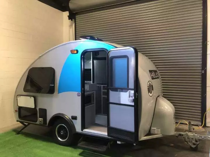 比较好的水滴形房车,是下面这款Helio O3。这款房比传统水滴形房车要高一些,不但内部能站立,而且也有功能完备的卫浴和厨房,但同时长度和重量又都控制得很好,长度只有4.3米,重量也只有1550磅(730公斤)。不过这个重量超出了大部分紧凑型SUV 1500磅的拖力(特别考虑到行李、车载淡水、乘客都会增加额外重量),需要特别挑选拖力比较大的车型才可以(紧凑型SUV里面,福特翼虎、Jeep指南者/自由光、起亚狮跑、马自达CX-5、丰田RAV4都有可以拖动2000磅以上的版本。这款房车在房车展上的优惠售价是1.9万美元。