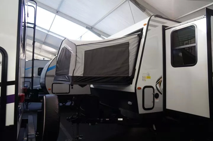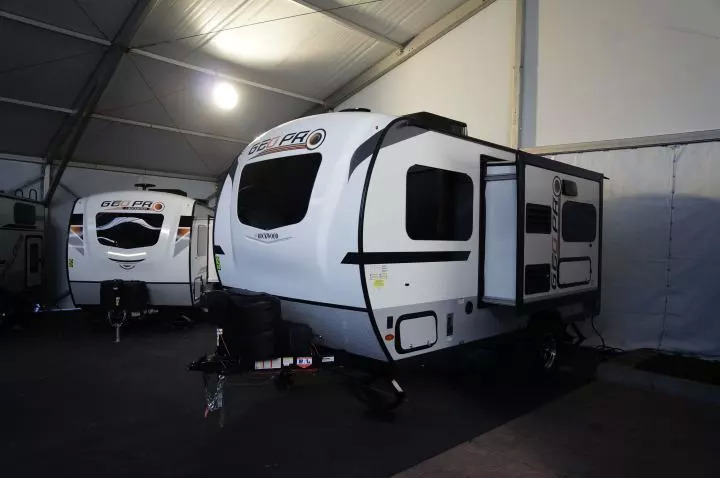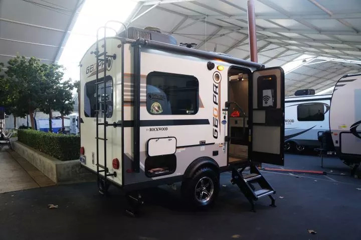 比如现场展出了十几种不同型号的Rockwood Geo Pro。Rockwood是美国也是世界第一大房车集团Forest River旗下的子品牌,而Geo Pro则是它的一个轻便拖挂房车的产品系列。