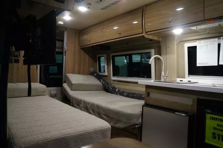 这些房车普遍的结构都是在车头处有兼做客厅、餐厅与儿童床铺的沙发卡座,车辆中间是相对的厨房和卫浴,车尾则是一张横向大床,可供一个4口之家相对舒适的居住。售价则普遍在2-3万美元之间,个别型号的价格甚至可以下探到1.7、1.8万美元。